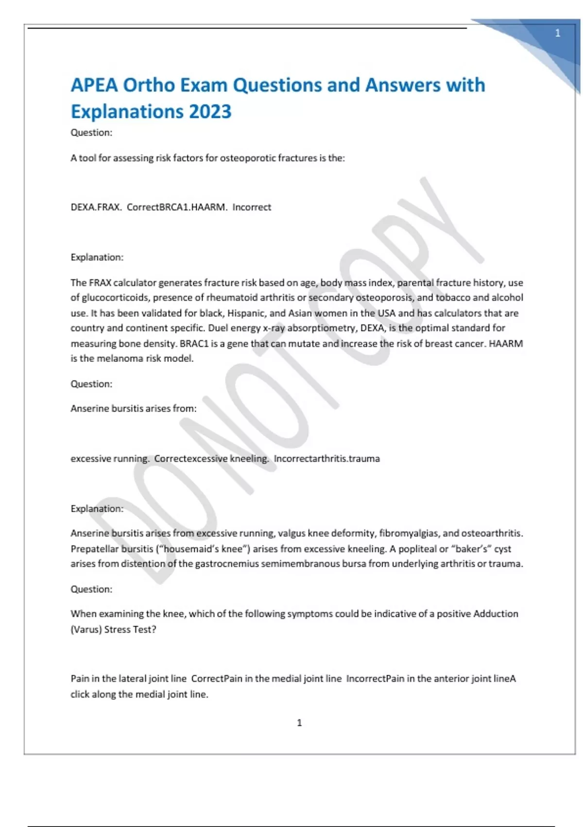 APEA Ortho Exam Questions and Answers with Explanations 2023