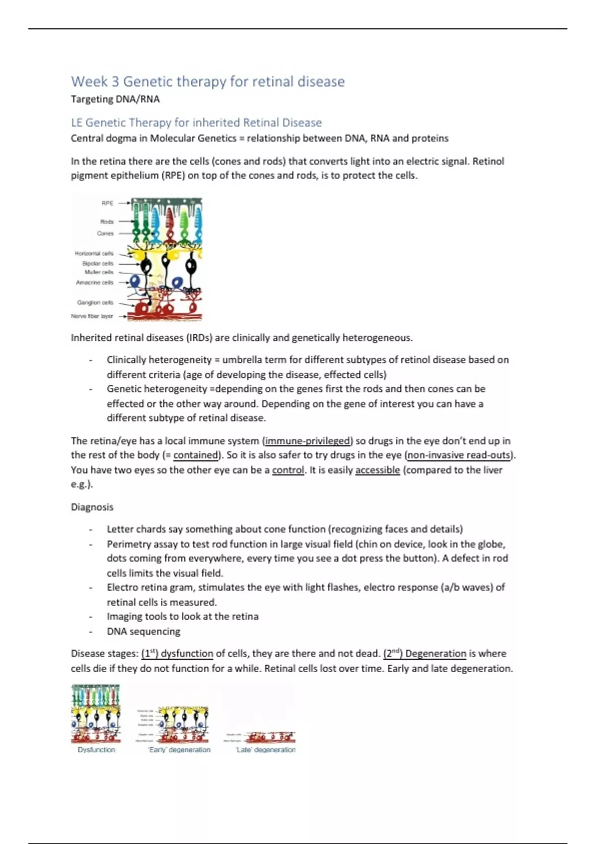 Week 3 Genetic therapy for retinal disease