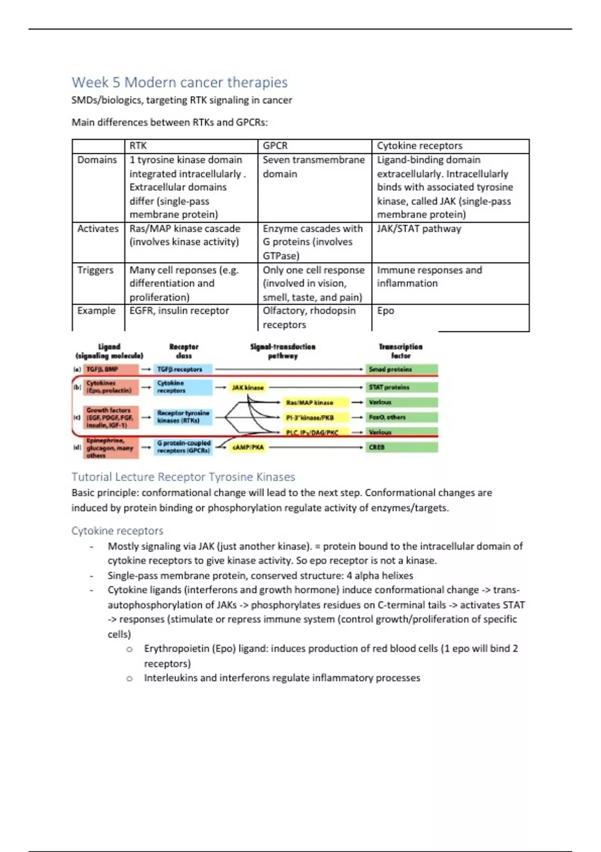 - Cytokine receptors -> JAK/STAT pathway -> effect on gene transcription.