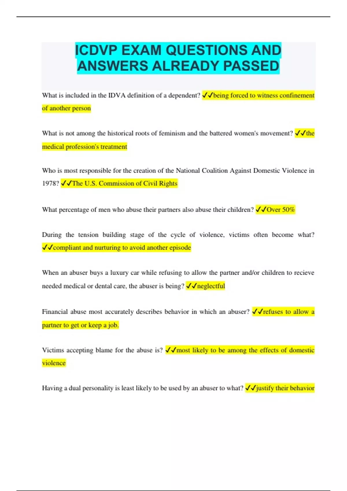 ICDVP EXAM QUESTIONS AND ANSWERS ALREADY PASSED