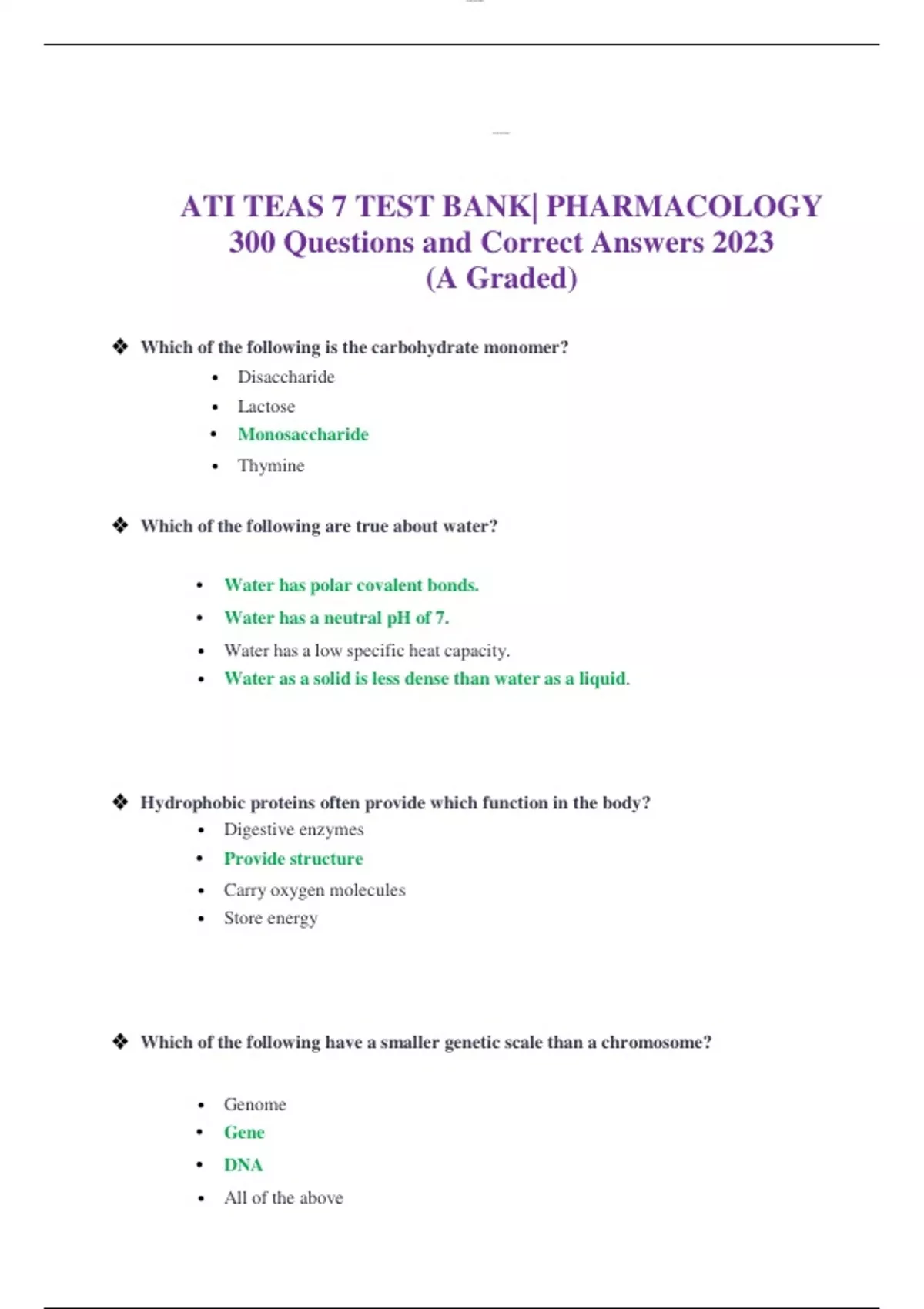 ATI TEAS 7 TEST BANK| PHARMACOLOGY 300 Questions and Correct Answers 2023 (A Graded)