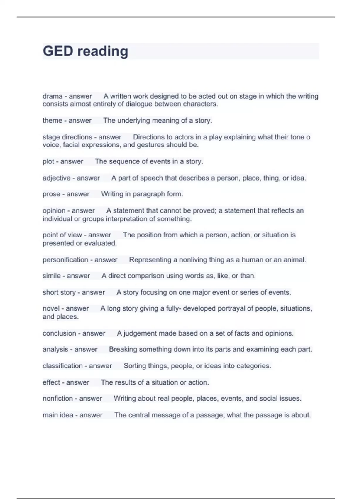 BUNDLE OF GED EXAM 2023 VERIFIED 2023