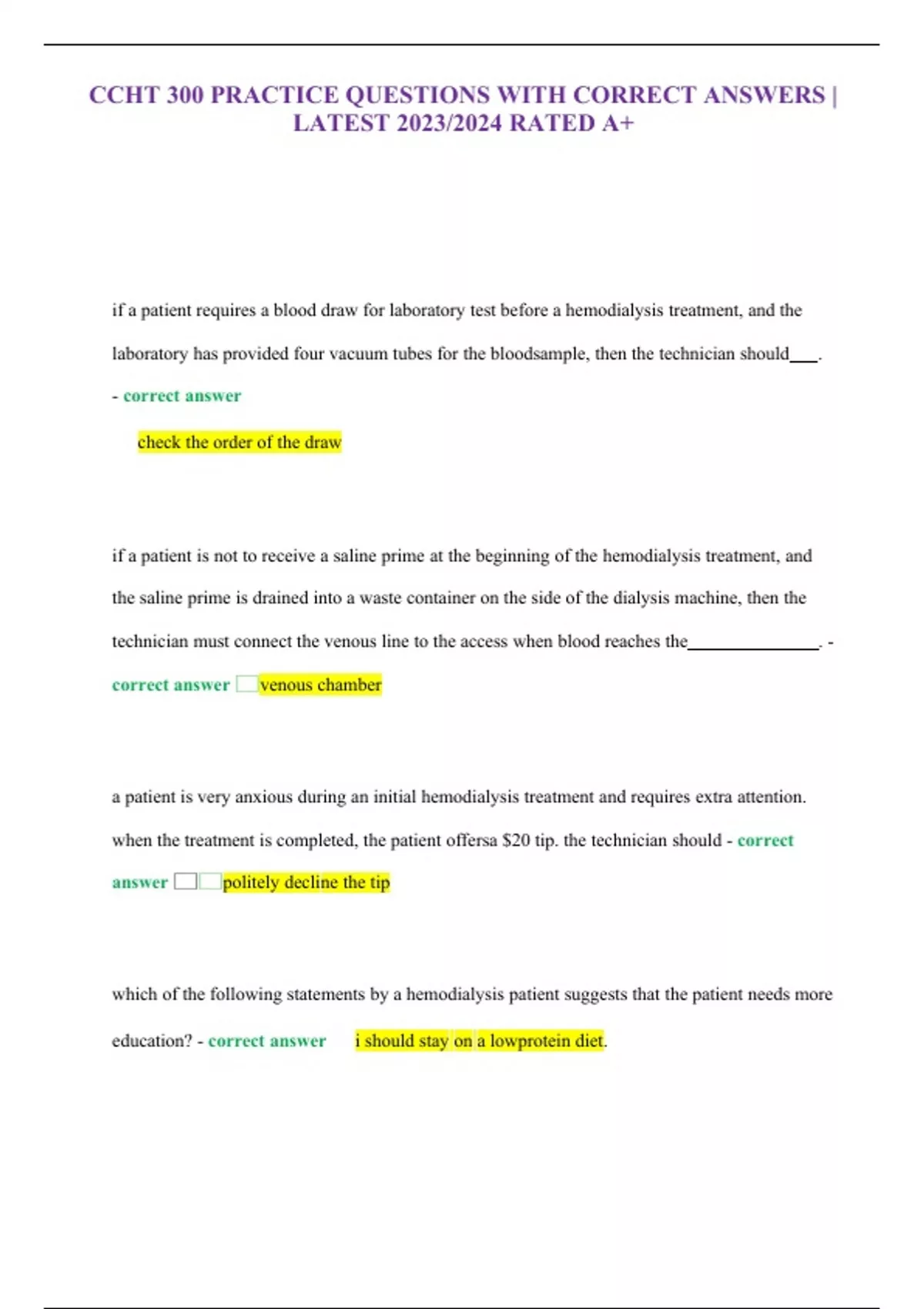 CCHT 300 PRACTICE QUESTIONS WITH CORRECT ANSWERS |