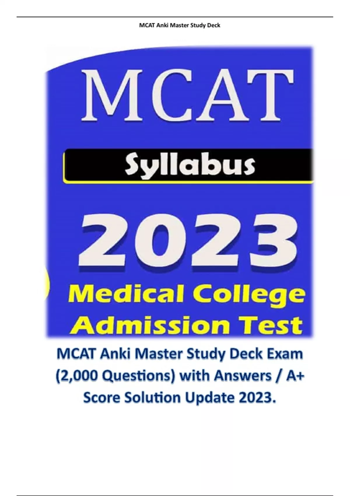MCAT Anki Master Study Deck Exam (2,000 Questions) with Answers / A+ Score Solution Update 2023.