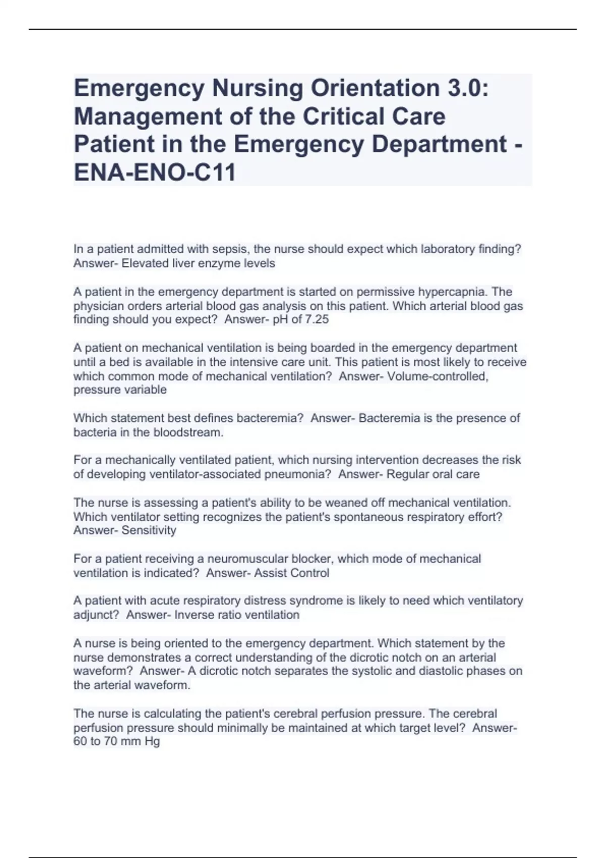 Emergency Nursing Orientation 3.0: Management of the Critical Care Patient in the Emergency Department - ENA-ENO-C11