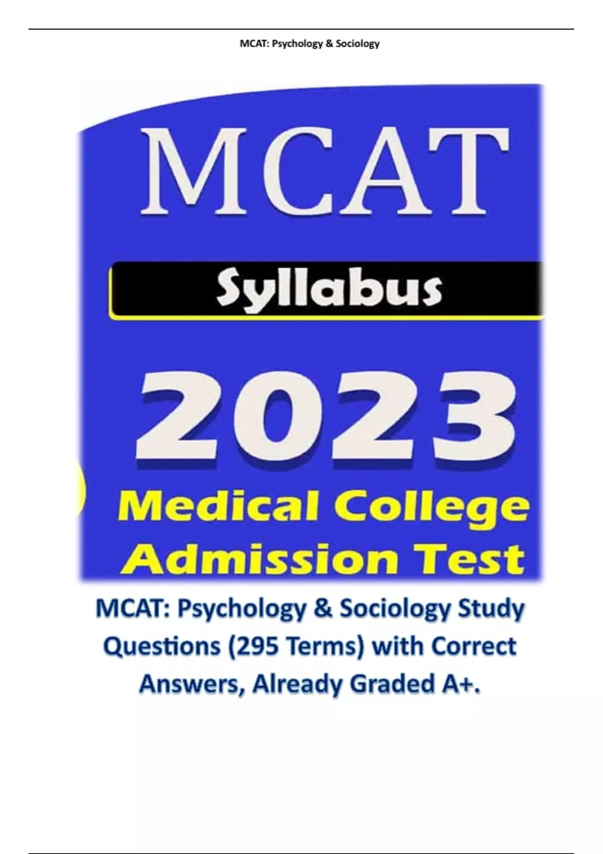 MCAT: Psychology & Sociology Study Questions (295 Terms) with Correct Answers, Already Graded A+.