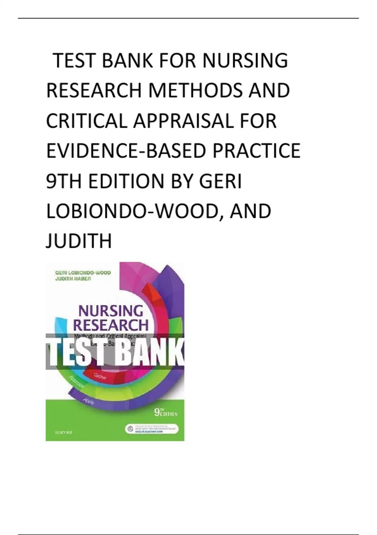 TEST BANK FOR NURSING RESEARCH METHODS AND CRITICAL APPRAISAL FOR EVIDENCE-BASED PRACTICE 9TH EDITION BY GERI LOBIONDO-WOOD, AND JUDITH