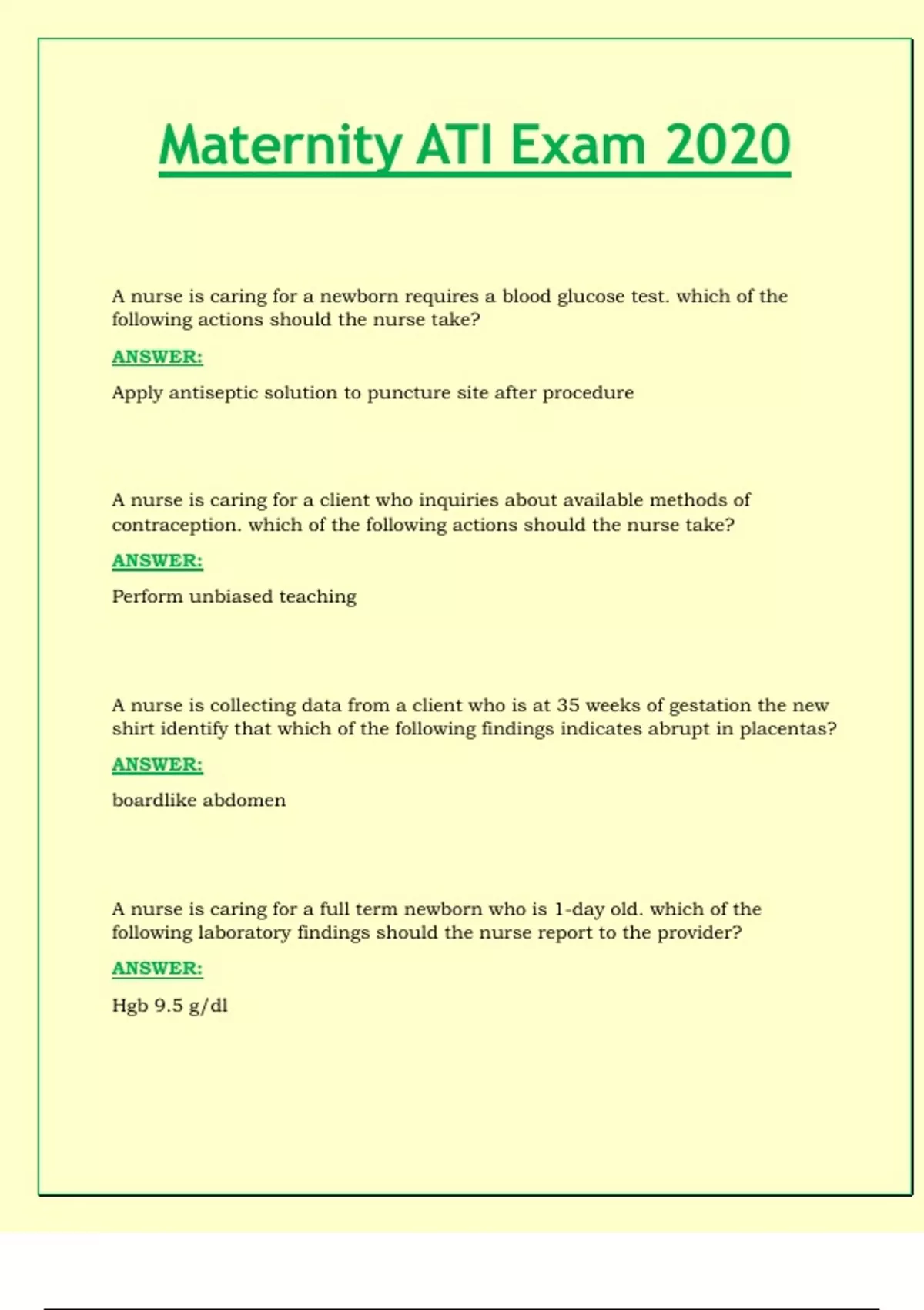 Maternity ATI Exam 2020 Questions and Answers