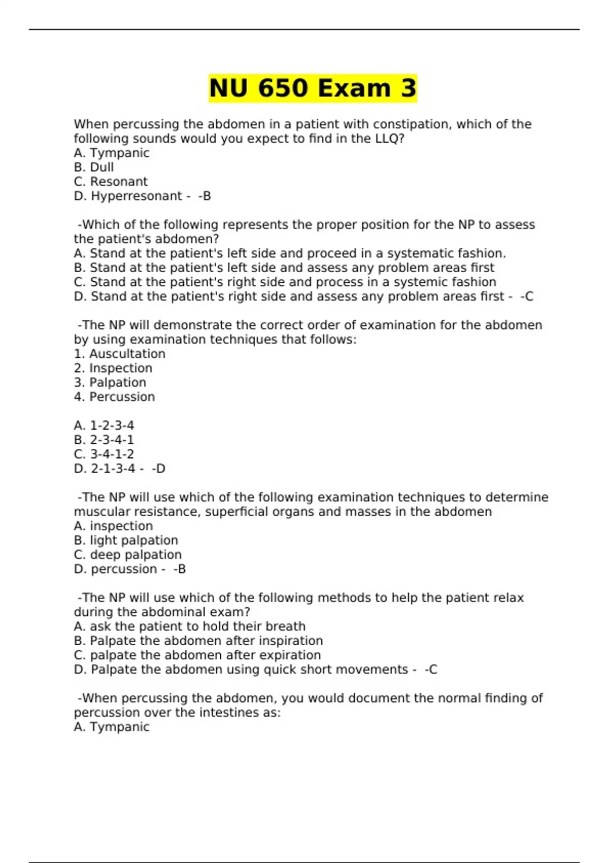 Exam of 10 pages for the course NU 650 at NU 650 (NU 650 Exam 3)