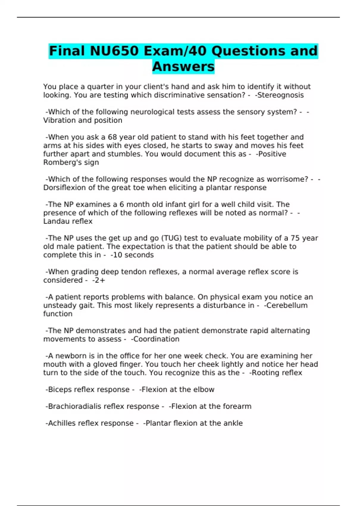 Final NU650 Exam/40 Questions and Answers