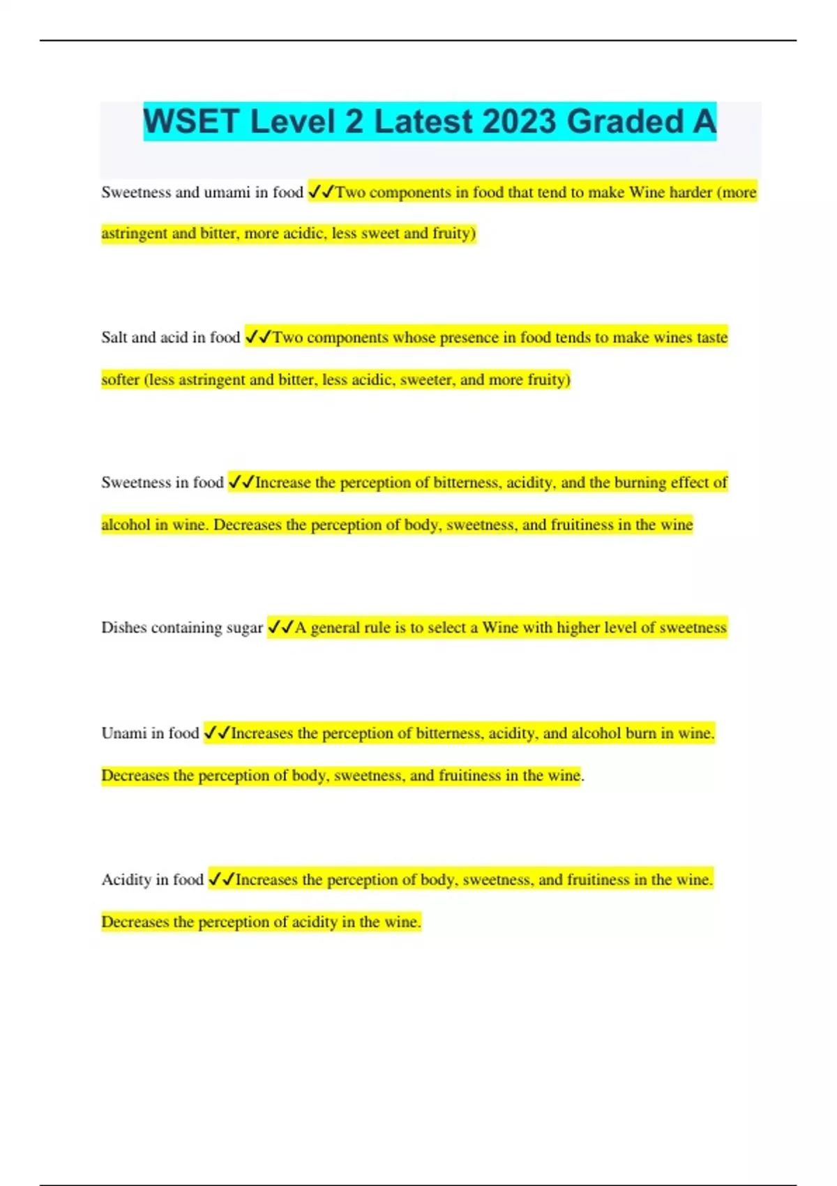WSET Level 2 Latest 2023 Graded A