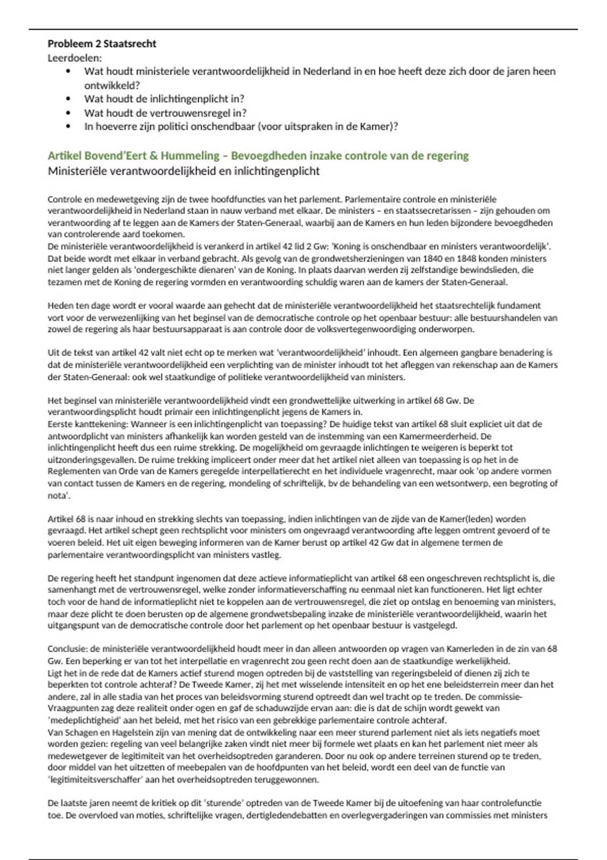 Samenvatting Probleem 2 uitwerkingen Staatsrecht