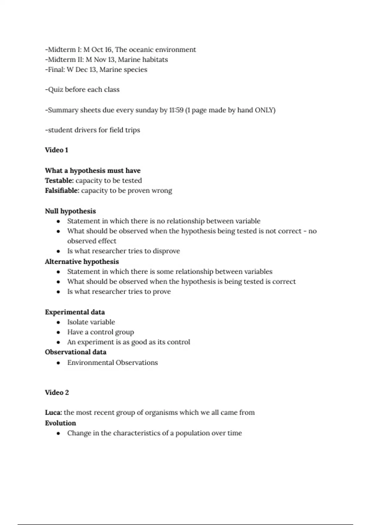 Marine Biology 250 Reading and Lecture notes