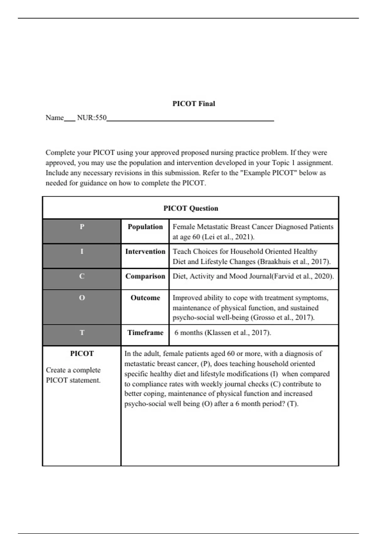 NUR 550 Topic 3 Assignment; Evidence-Based Practice Project Proposal; PICOT