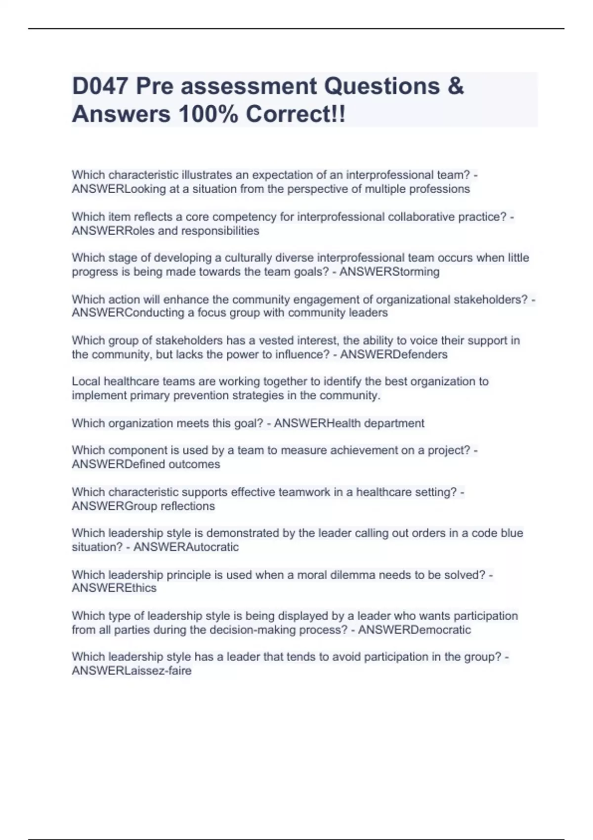 D047 Pre assessment Questions & Answers 100% Correct!!