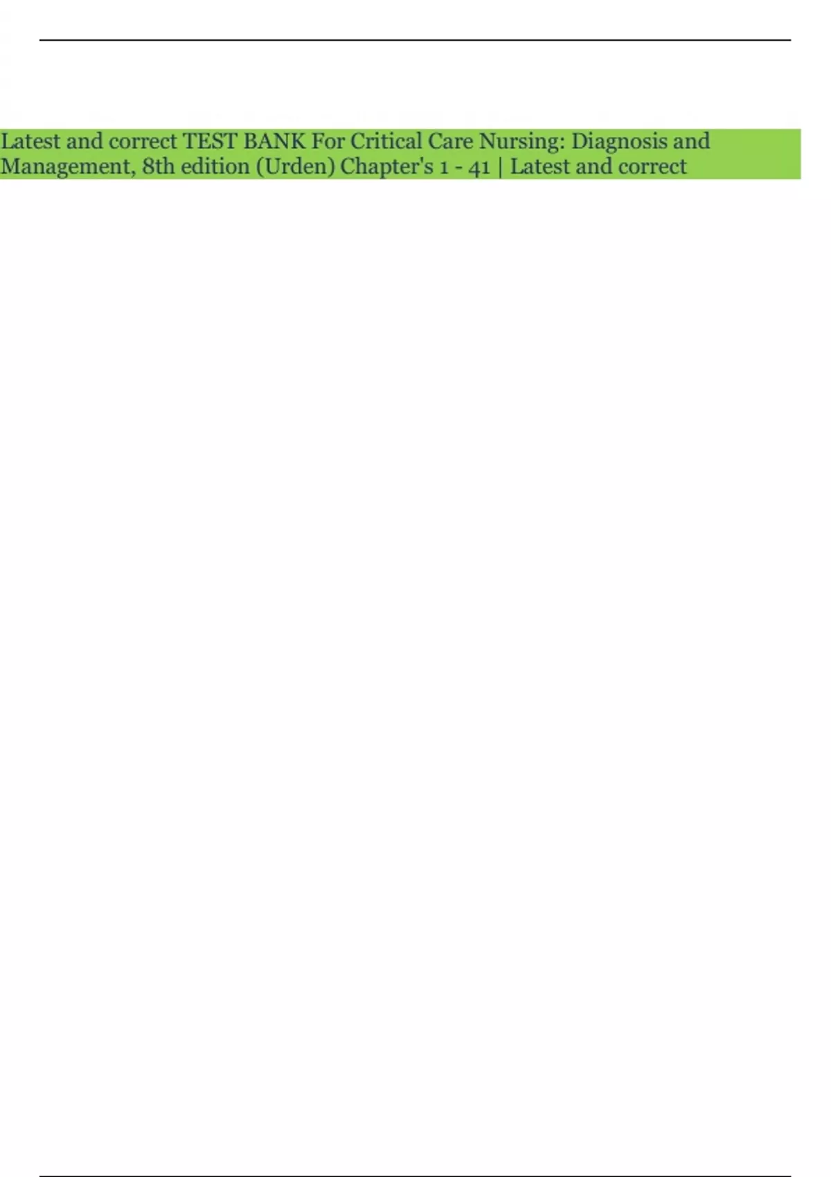 Latest and correct TEST BANK For Critical Care Nursing: Diagnosis and Management, 8th edition (Urden) Chapter's 1 - 41 | Latest and correct