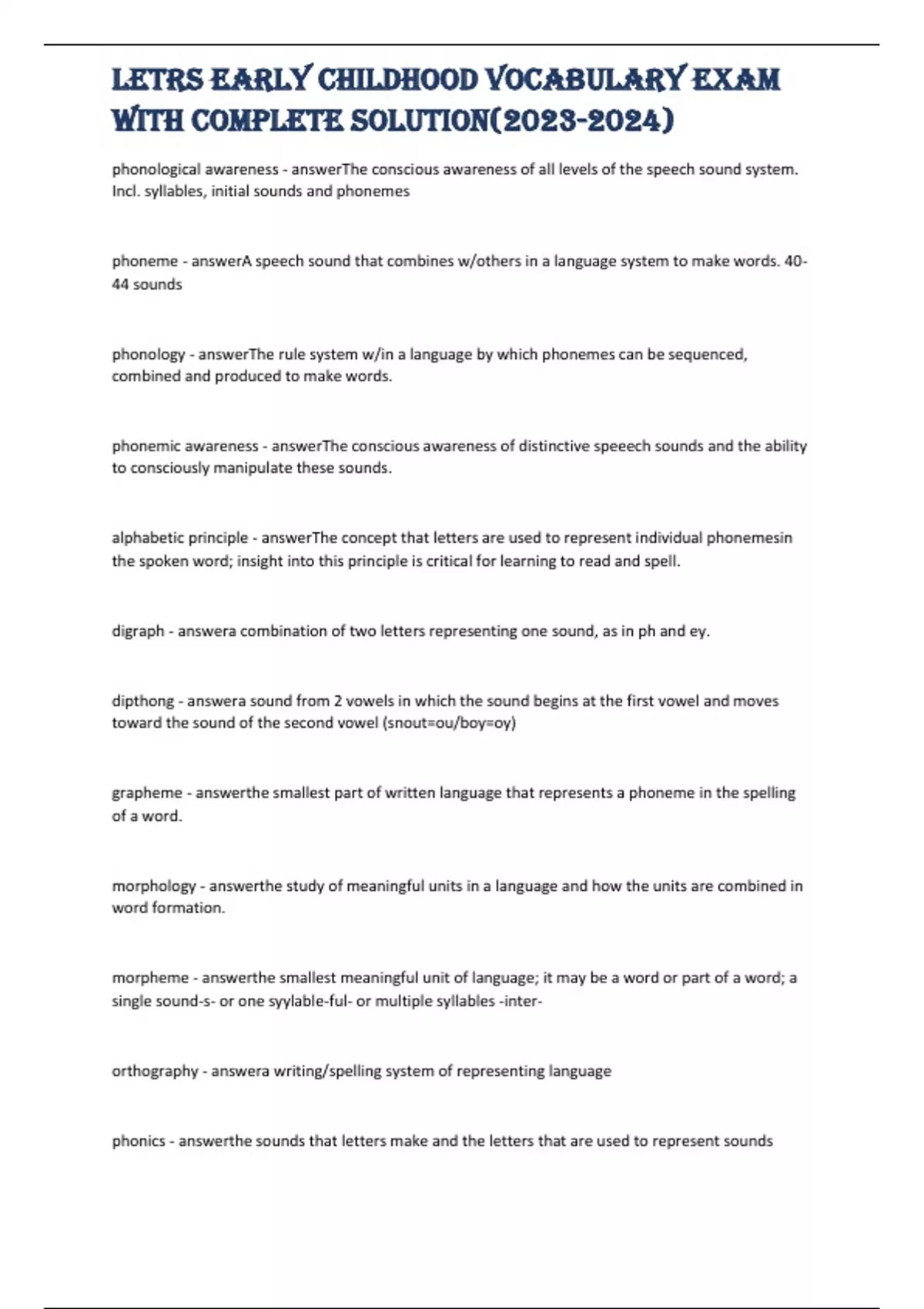LETRS Early Childhood Vocabulary Exam with complete solution()