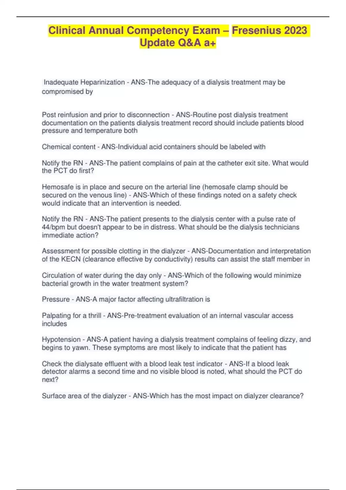 Clinical Annual Competency Exam – Fresenius 2023 Update Q&A a+