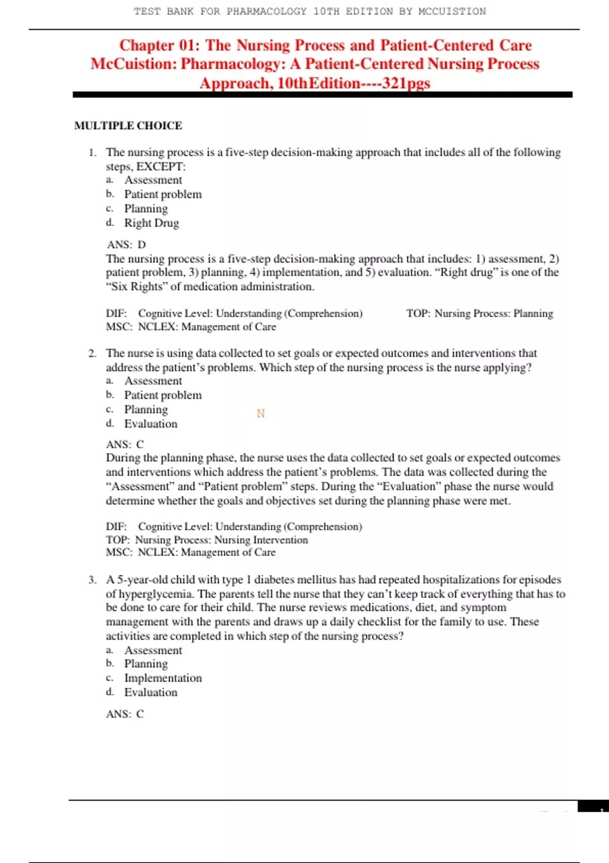 TEST BANK FOR PHARMACOLOGY 10TH EDITION BY MCCUISTION