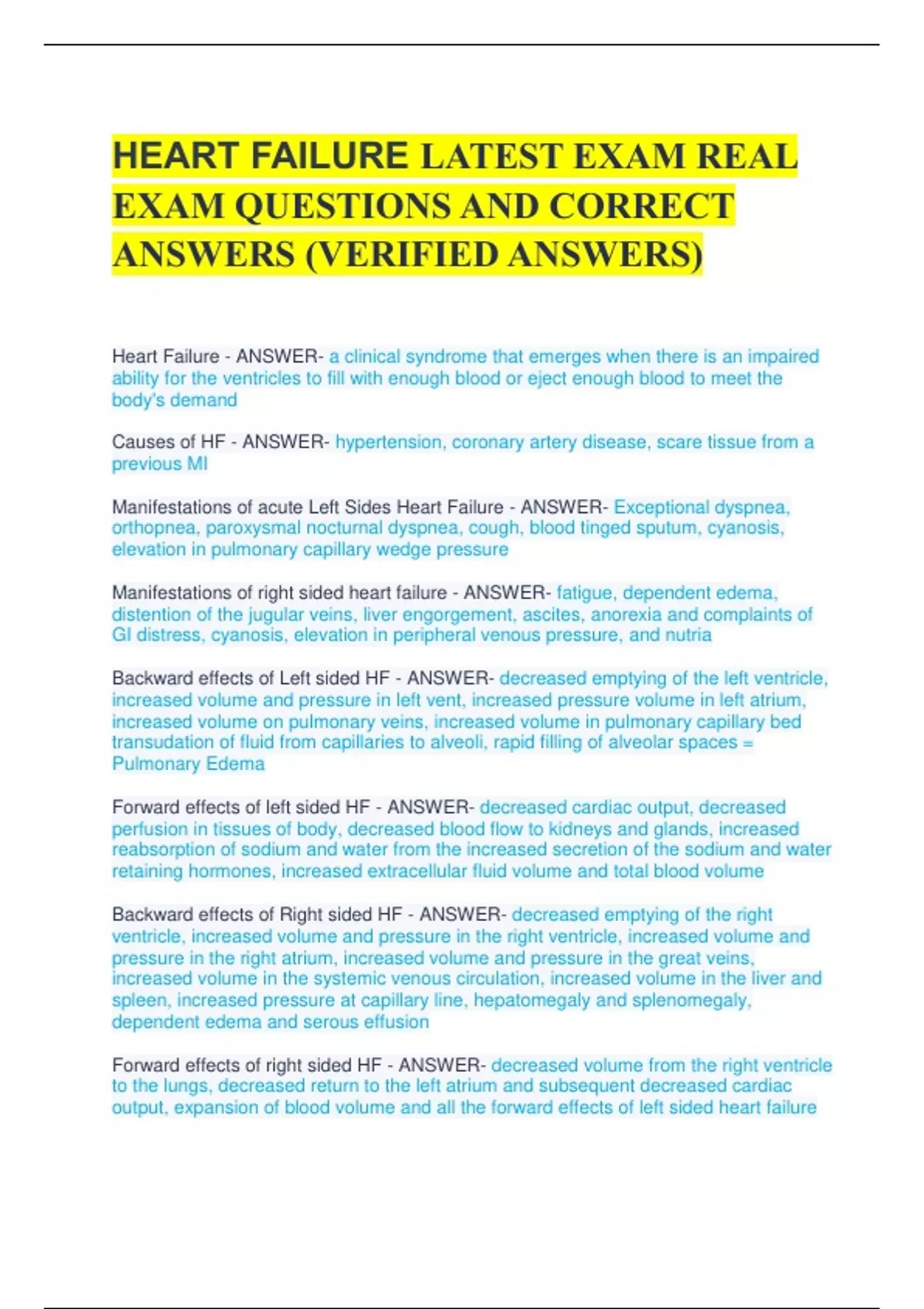 HEART FAILURE LATEST EXAM REAL EXAM QUESTIONS AND CORRECT ANSWERS (VERIFIED ANSWERS)