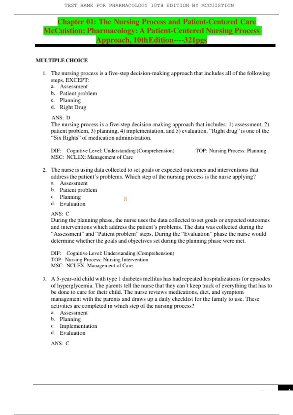 TEST BANK FOR PHARMACOLOGY 10TH EDITION BY MCCUISTIONTEST BANK FOR PHARMACOLOGY 10TH EDITION BY MCCUISTION