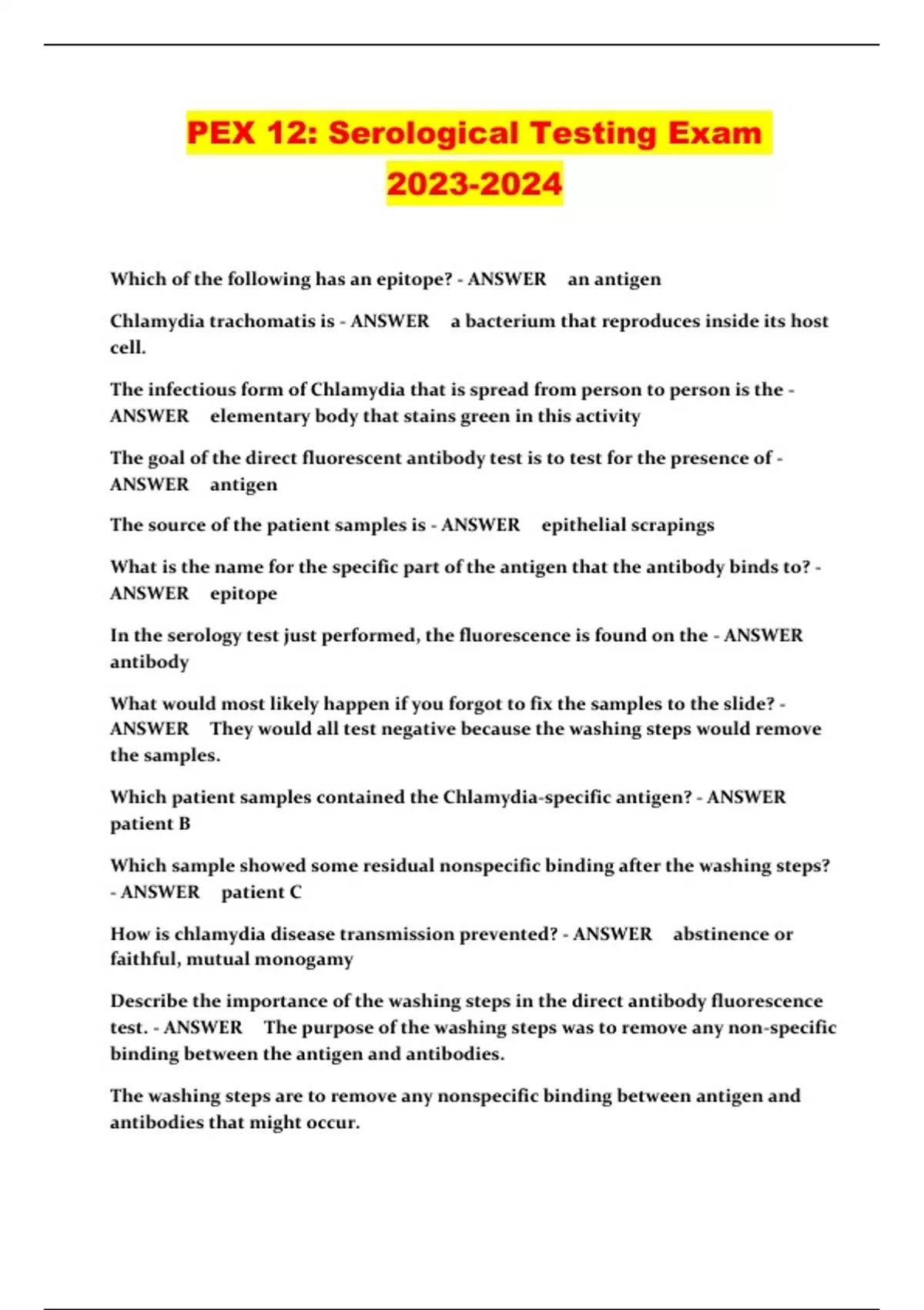 PEX 12: Serological Testing Exam