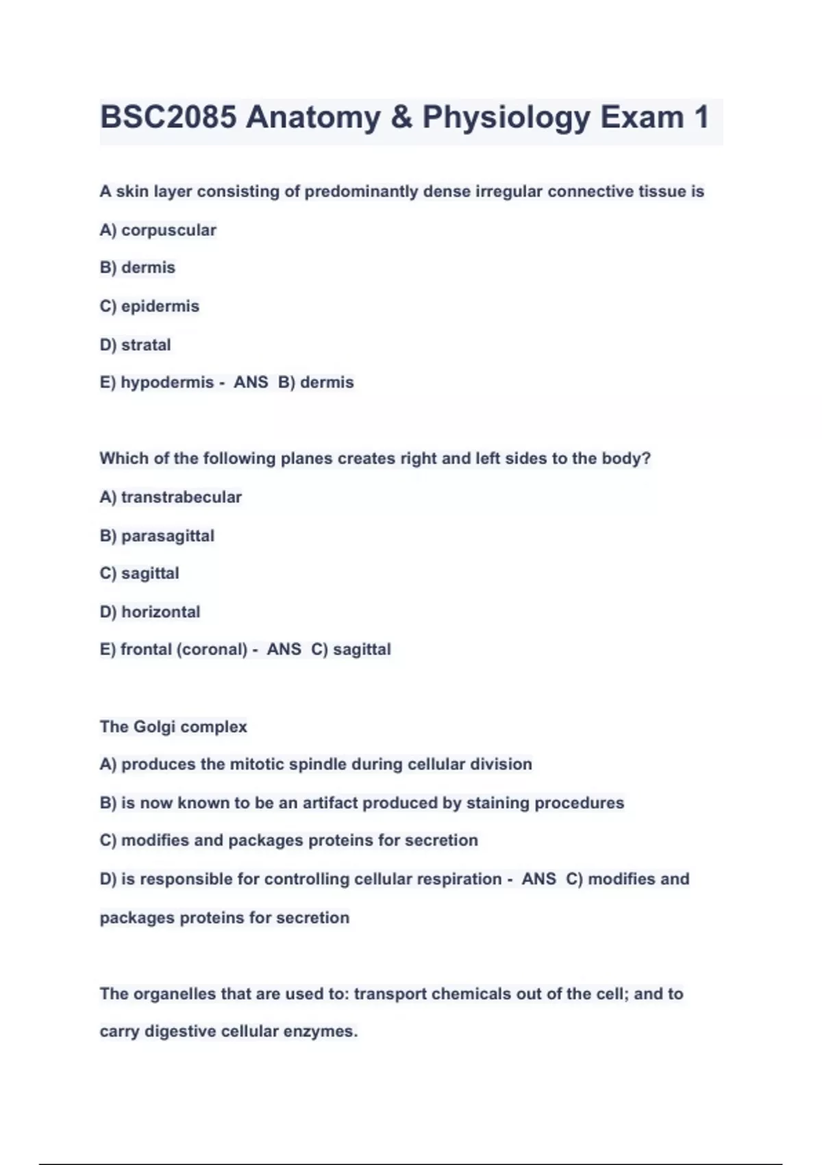 BSC2085 Anatomy & Physiology Exam 1 Questions & Answers 2023(A+GRADED 100%VERIFIED)