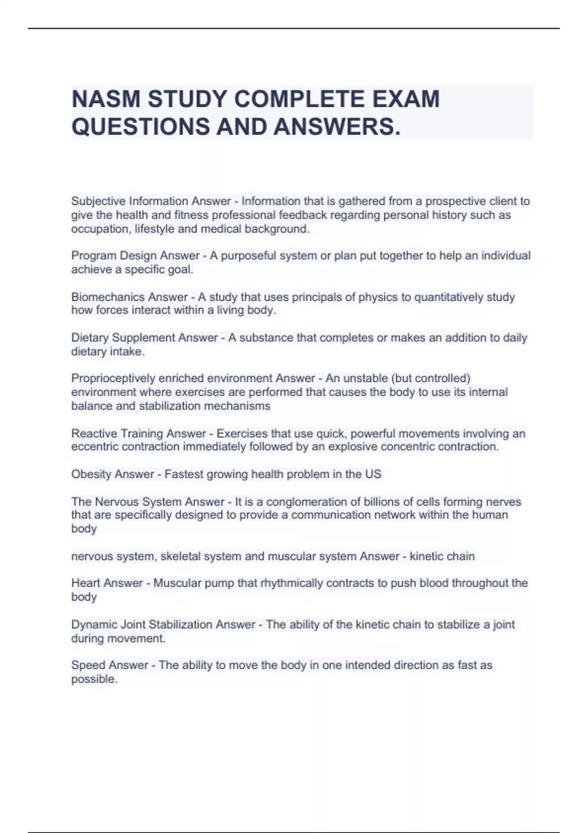 NASM STUDY COMPLETE EXAM QUESTIONS AND ANSWERS.