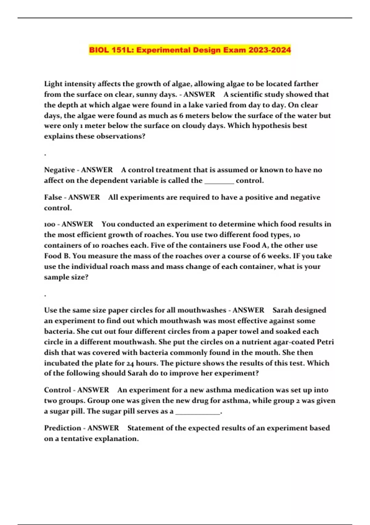 BIOL 151L: Experimental Design Exam ...