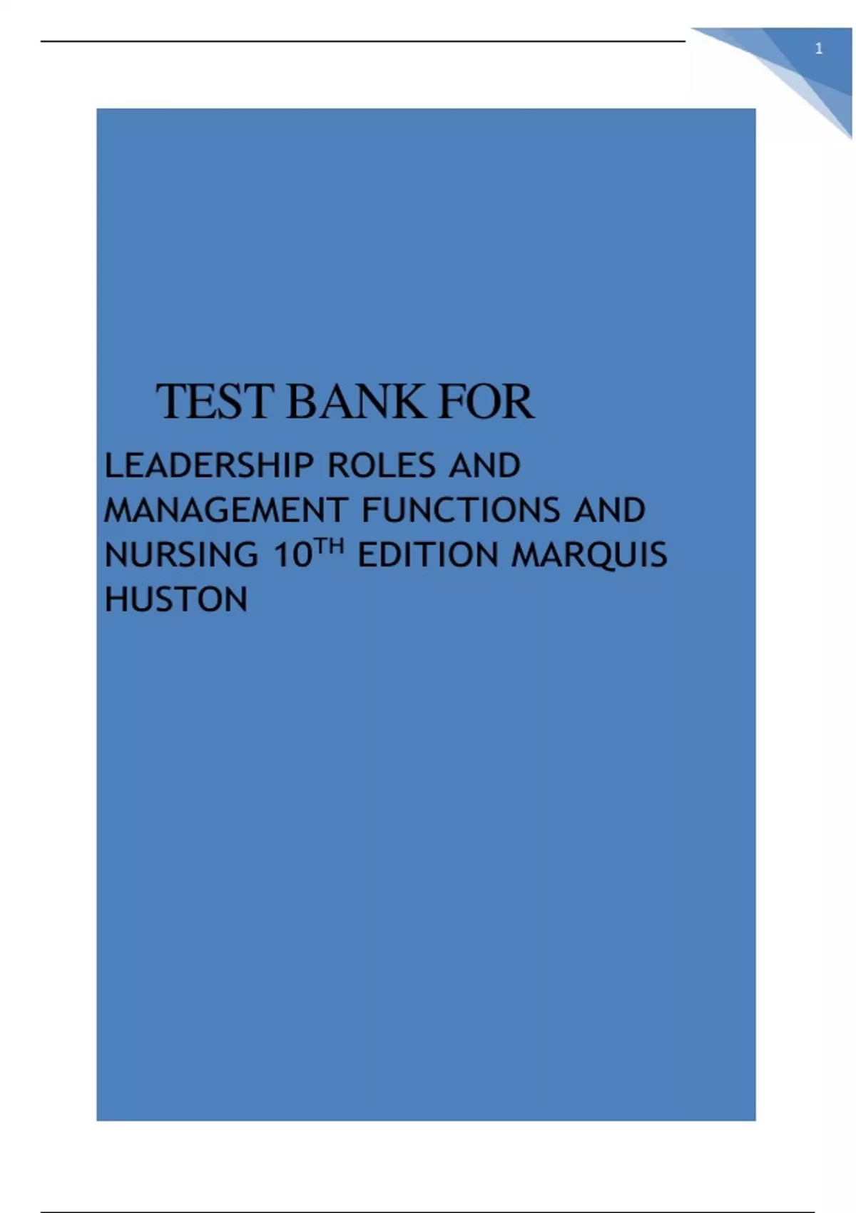 TEST BANK FOR LEADERSHIP ROLES AND MANAGEMENT FUNCTIONS AND NURSING 10TH EDITION MARQUIS HUSTON GRADED A+
