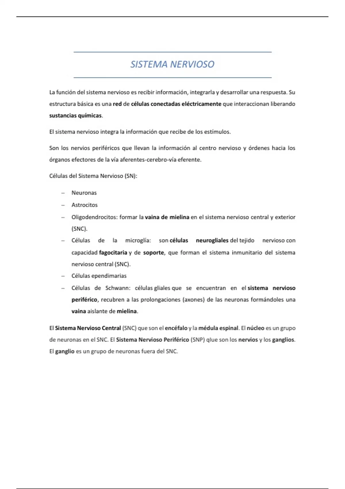 La función del sistema nervioso es recibir información, integrarla y desarrollar una respuesta. Su