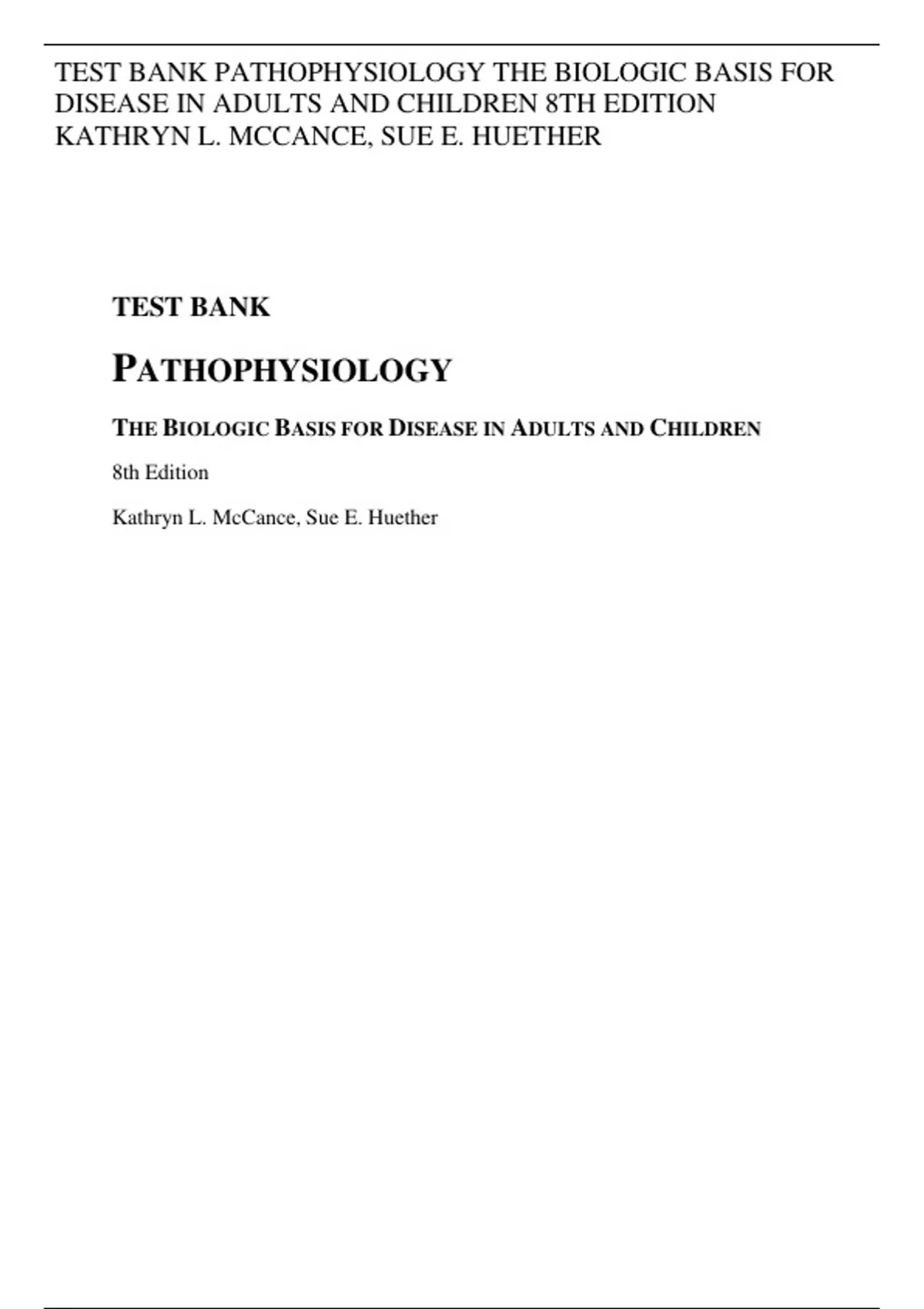 TEST BANK PATHOPHYSIOLOGY THE BIOLOGIC BASIS FOR DISEASE IN ADULTS AND CHILDREN 8TH EDITION KATHRYN L. MCCANCE, SUE E. HUETHER