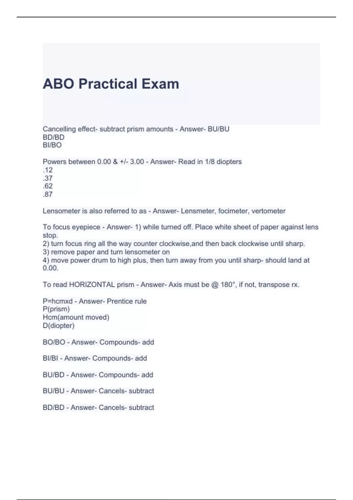 ABO Practical Exam Questions and Answers (Graded A)