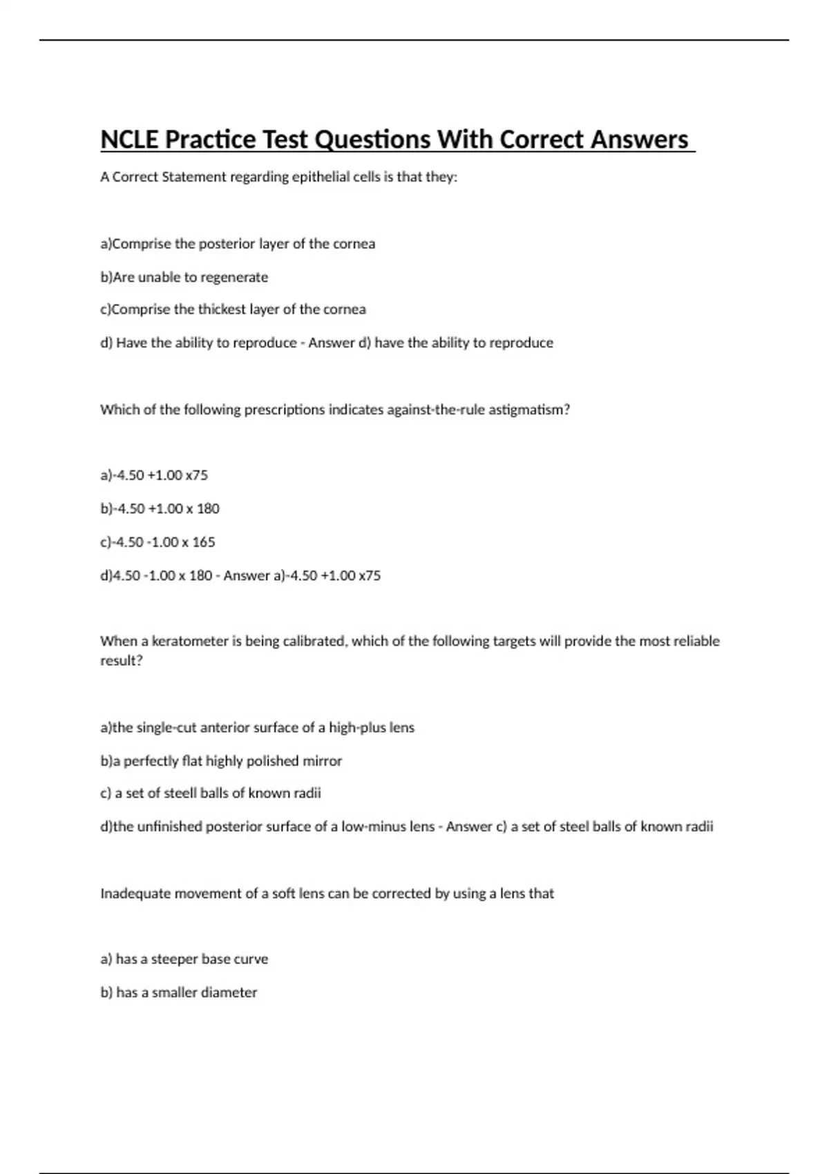 NCLE Practice Test Questions With Correct Answers