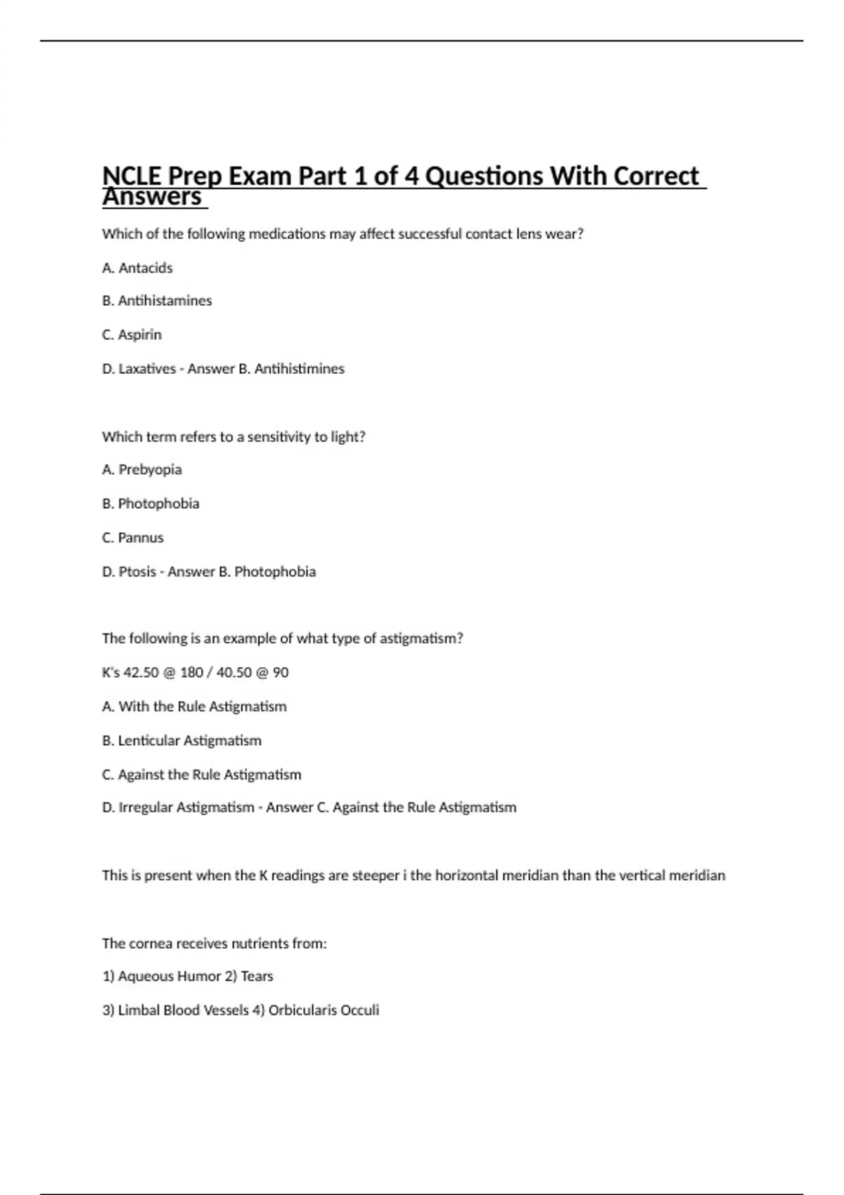 NCLE Prep Exam Part 1 of 4 Questions With Correct Answers