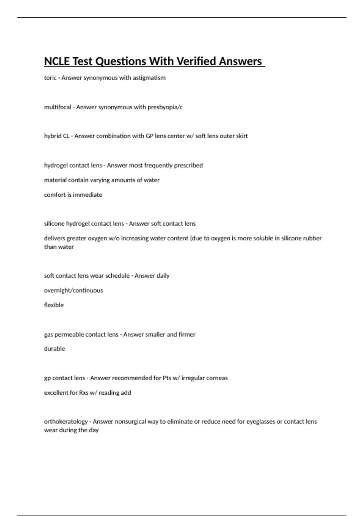 NCLE Test Questions With Verified Answers