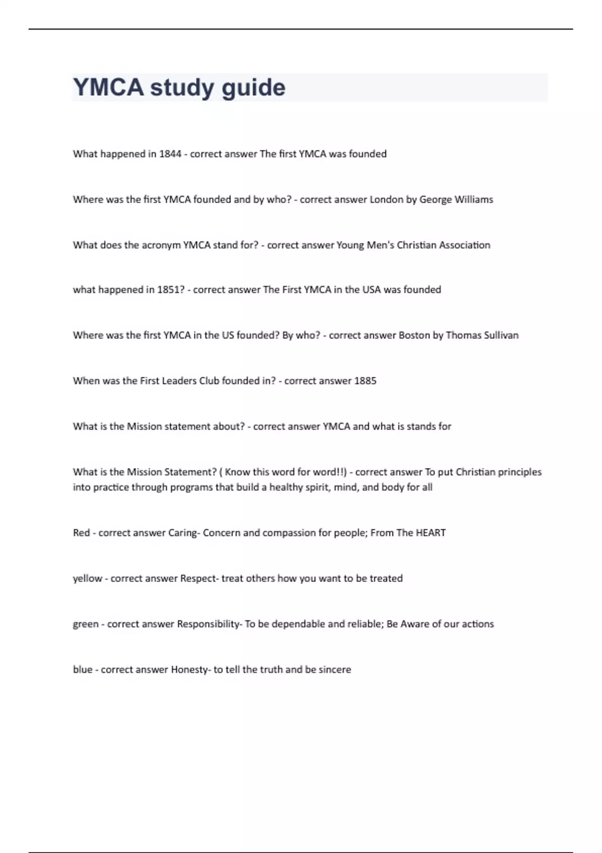 YMCA study guide(questions and answers)graded A+ 2023/2024
