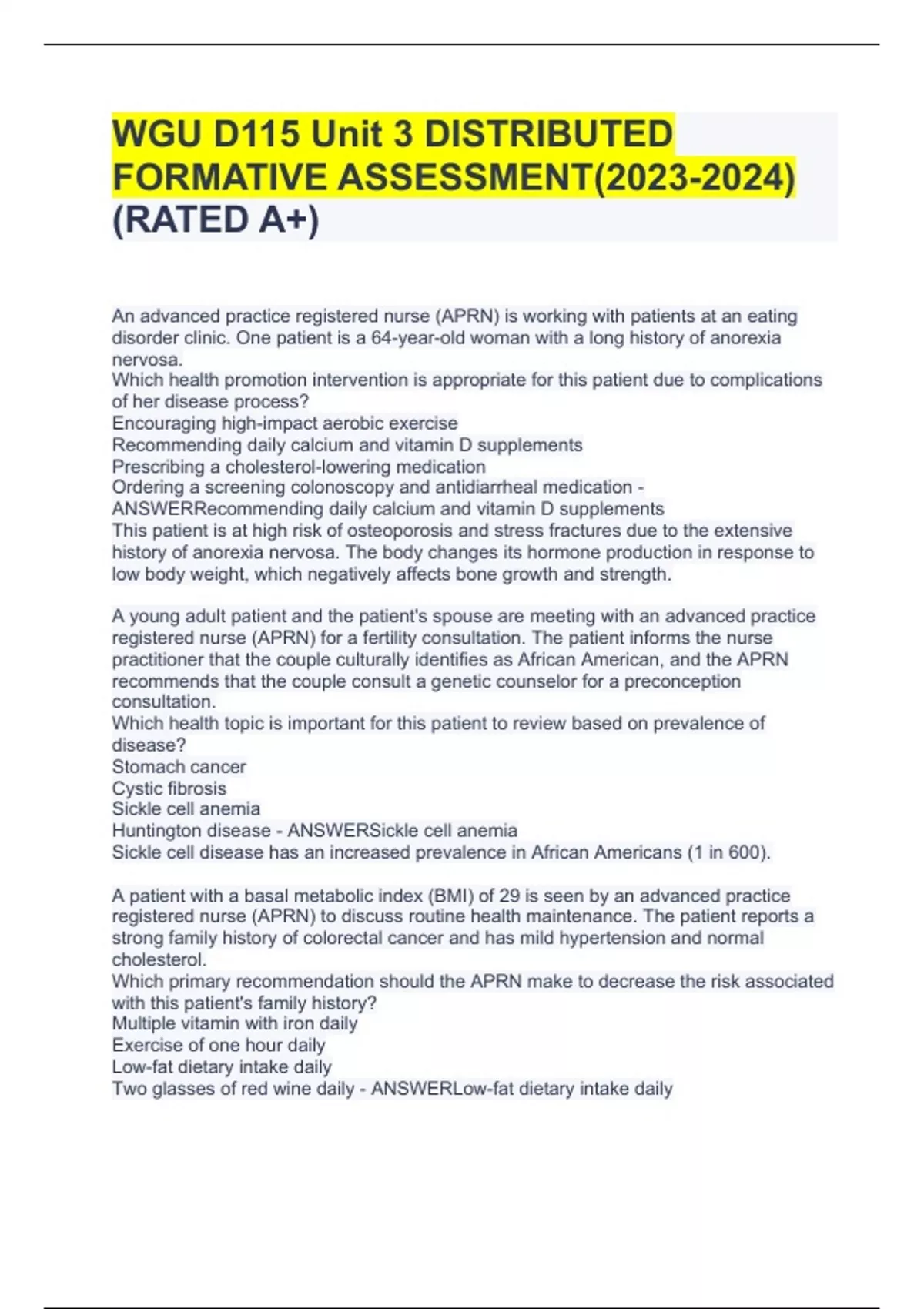 WGU D115 Unit 3 DISTRIBUTED FORMATIVE ASSESSMENT(2
