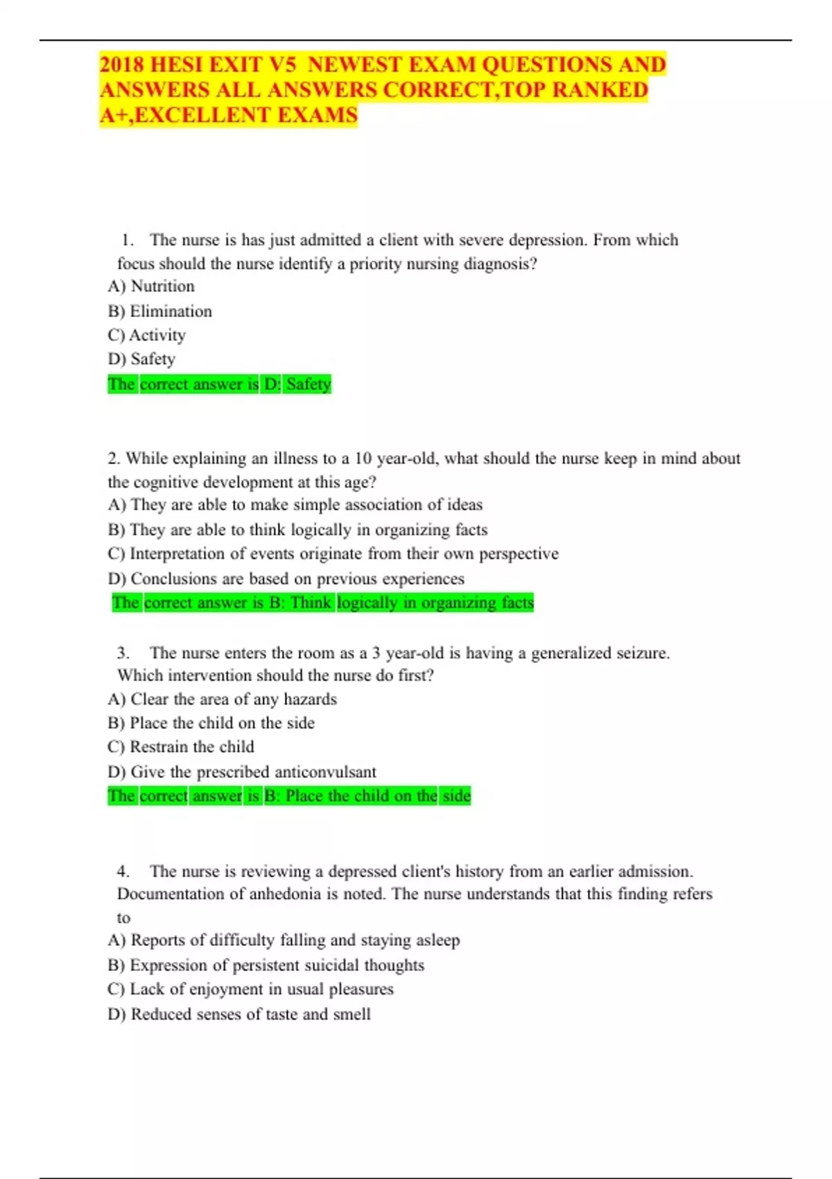 2018 HESI EXIT V5 NEWEST EXAM QUESTIONS AND ANSWERS ALL ANSWERS CORRECT,TOP RANKED A+,EXCELLENT EXAMS