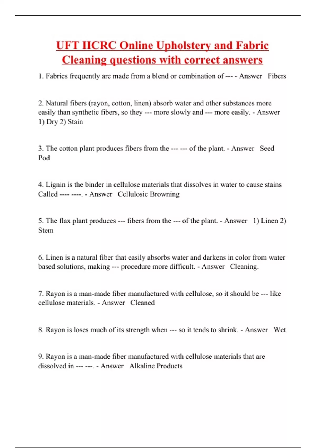 UFT IICRC Online Upholstery and Fabric Cleaning questions with correct answers