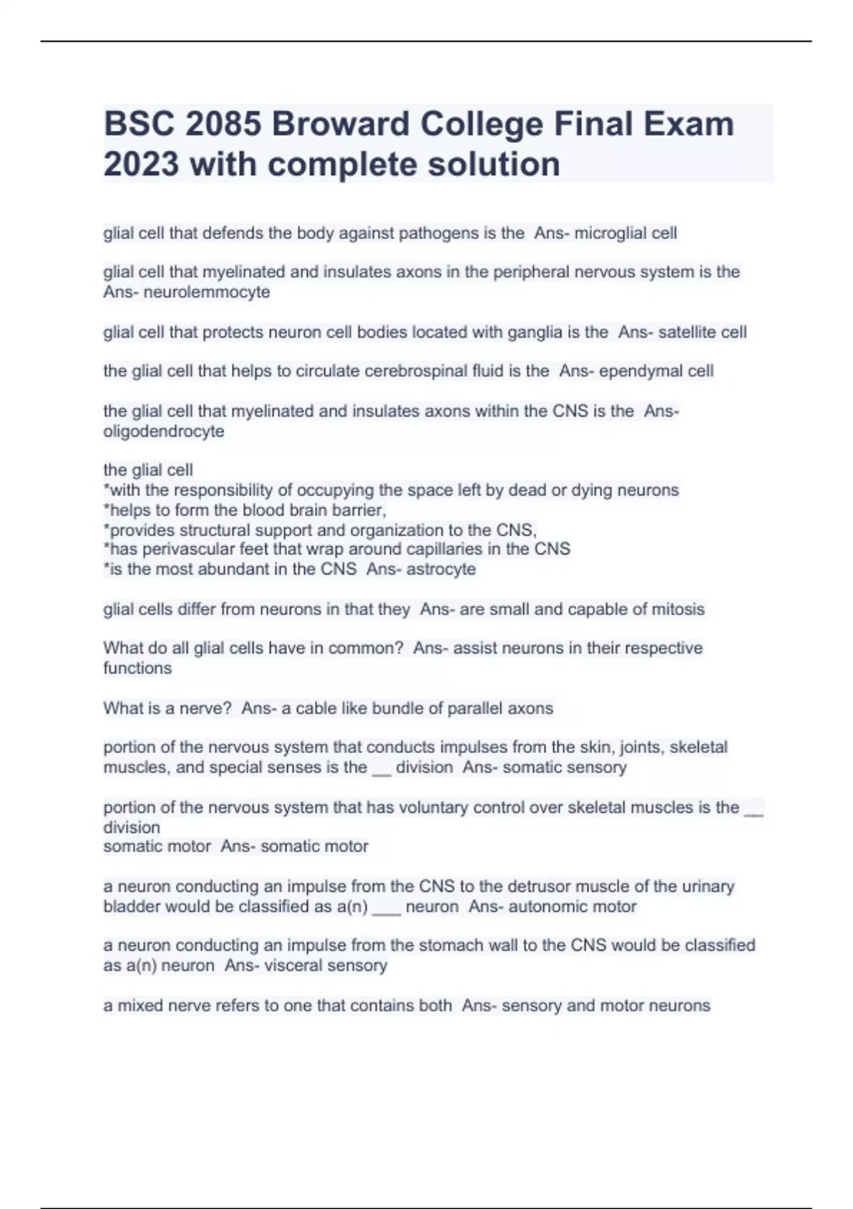 BSC 2085 Broward College Final Exam 2023 with complete solution
