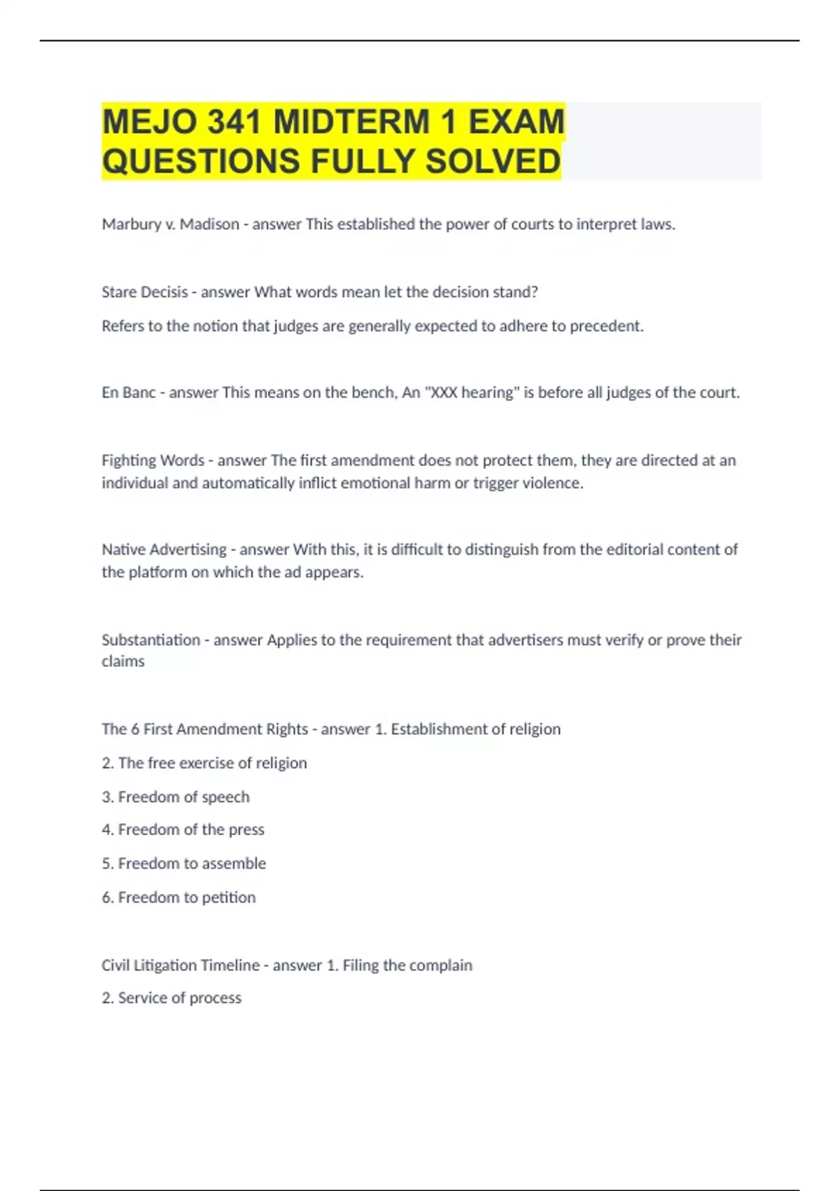 MEJO 341 MIDTERM 1 EXAM QUESTIONS FULLY SOLVED