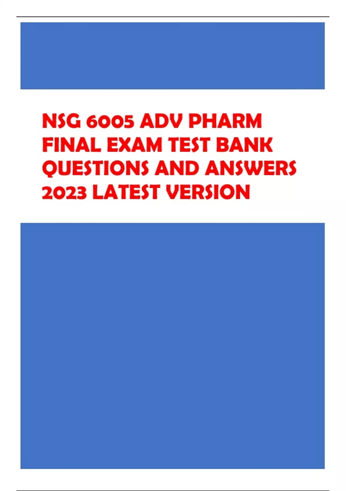 NSG 6005 ADV PHARM FINAL EXAM TEST BANK QUESTIONS AND ANSWERS 2023 LATEST VERSION