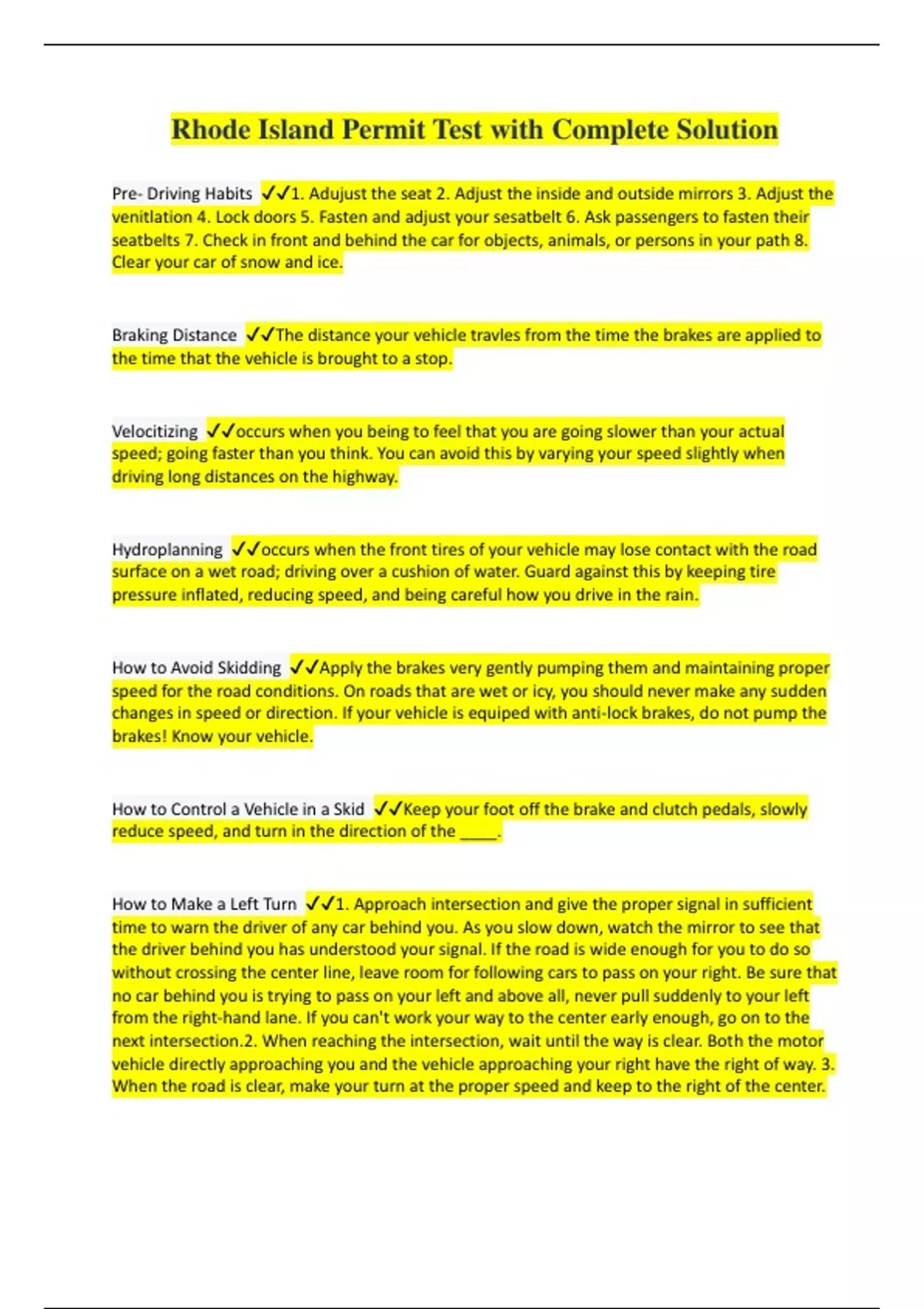 Pre- Driving Habits 1. Adujust the seat 2. Adjust the inside and outside mirrors 3. Adjust the venitlation 4. Lock doors 5. Fasten and adjust your sesatbelt 6. Ask passengers to fasten their seatbelts 7. Check in front and behind the car for objects, animals, or persons in your path 8. Clear your car of snow and ice. Braking Distance The distance your vehicle travles from the time the brakes are applied to the time that the vehicle is brought to a stop. Velocitizing occurs when you being to feel that you are going slower than your actual speed; going faster than you think. You can avoid this by varying your speed slightly when driving long distances on the highway. Hydroplanning occurs when the front tires of your vehicle may lose contact with the road surface on a wet road; driving over a cushion of water. Guard against this by keeping tire pressure inflated, reducing speed, and being careful how you drive in the rain. How to Avoid Skidding Apply the brakes very gently pumping them and maintaining proper speed for the road conditions. On roads that are wet or icy, you should never make any sudden changes in speed or direction. If your vehicle is equiped with anti-lock brakes, do not pump the brakes! Know your vehicle. How to Control a Vehicle in a Skid Keep your foot off the brake and clutch pedals, slowly reduce speed, and turn in the direction of the ____. How to Make a Left Turn 1. Approach intersection and give the proper signal in sufficient time to warn the driver of any car behind you. As you slow down, watch the mirror to see that the driver behind you has understood your signal. If the road is wide enough for you to do so without crossing the center line, leave room for following cars to pass on your right. Be sure that no car behind you is trying to pass on your left and above all, never pull suddenly to your left from the right-hand lane. If you can't work your way to the center early enough, go on to the next intersection.2. When reaching the intersection, wait until the way is clear. Both the motor vehicle directly approaching you and the vehicle approaching your right have the right of way. 3. When the road is clear, make your turn at the proper speed and keep to the right of the center.