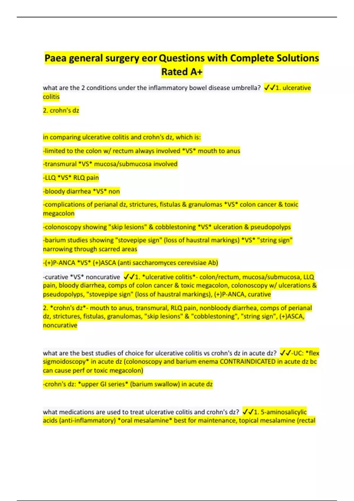 Paea general surgery eor Questions with Complete Solutions Rated A+