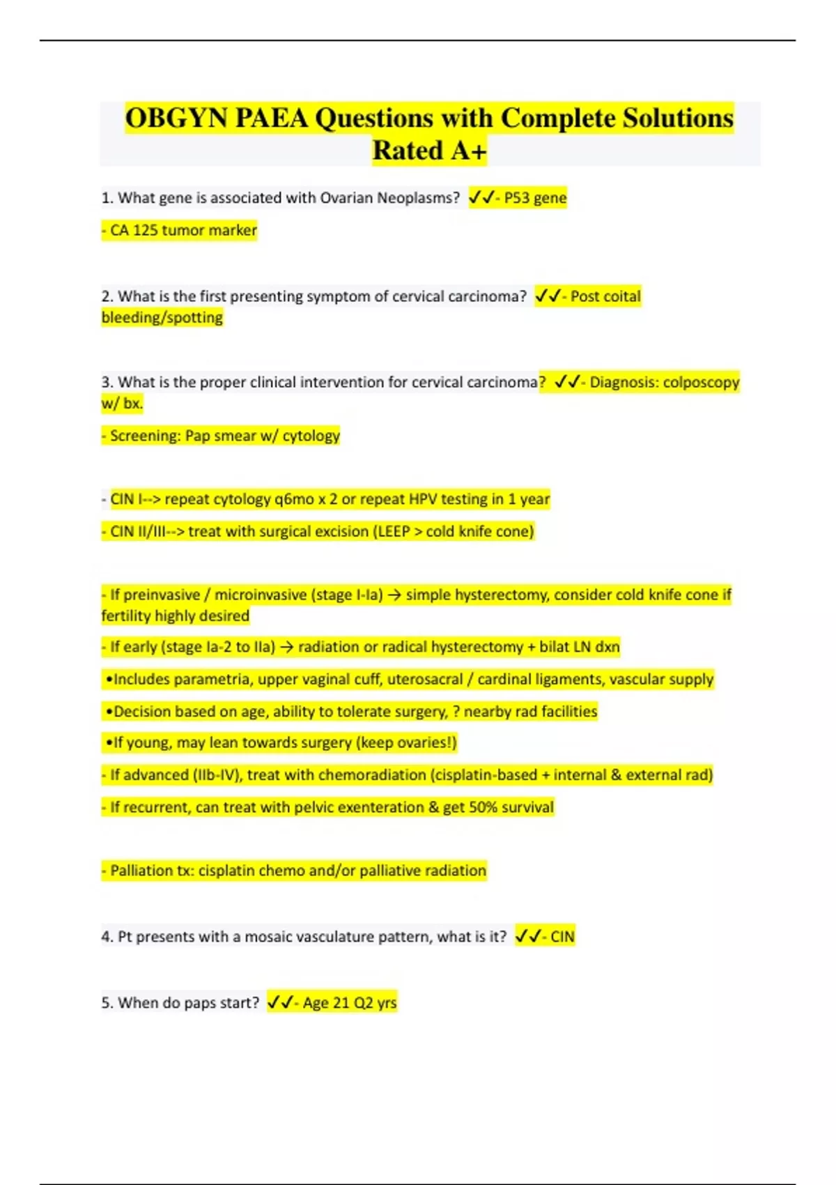 OBGYN PAEA Questions with Complete Solutions Rated A+