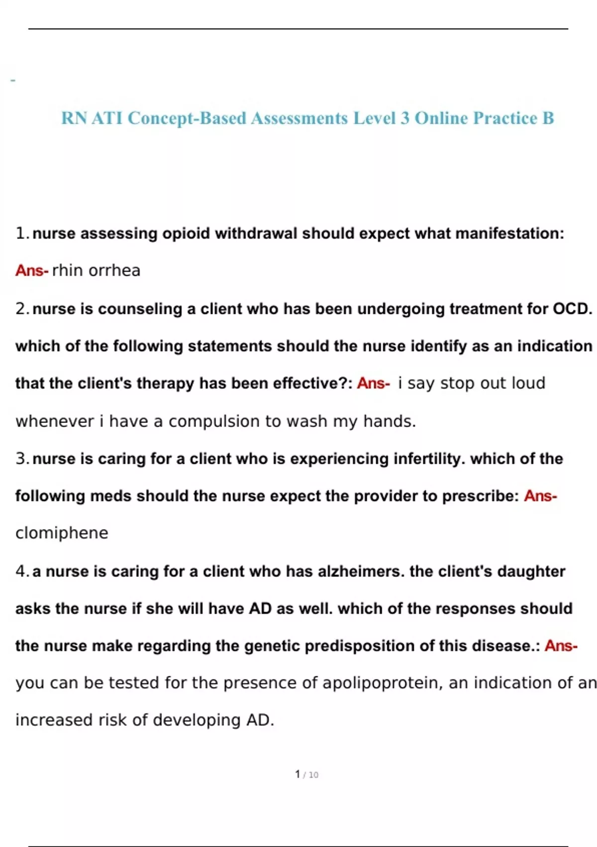 RN ATI Concept-Based Assessments Level 3 Online Practice B Questions and Answers (Verified Answers)