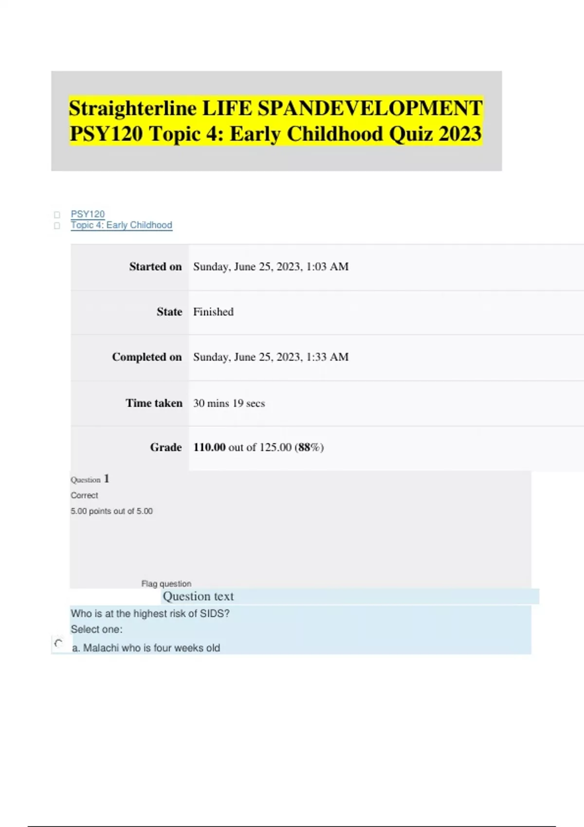 Straighterline LIFE SPANDEVELOPMENT PSY120 Topic 4: Early Childhood Quiz 2023