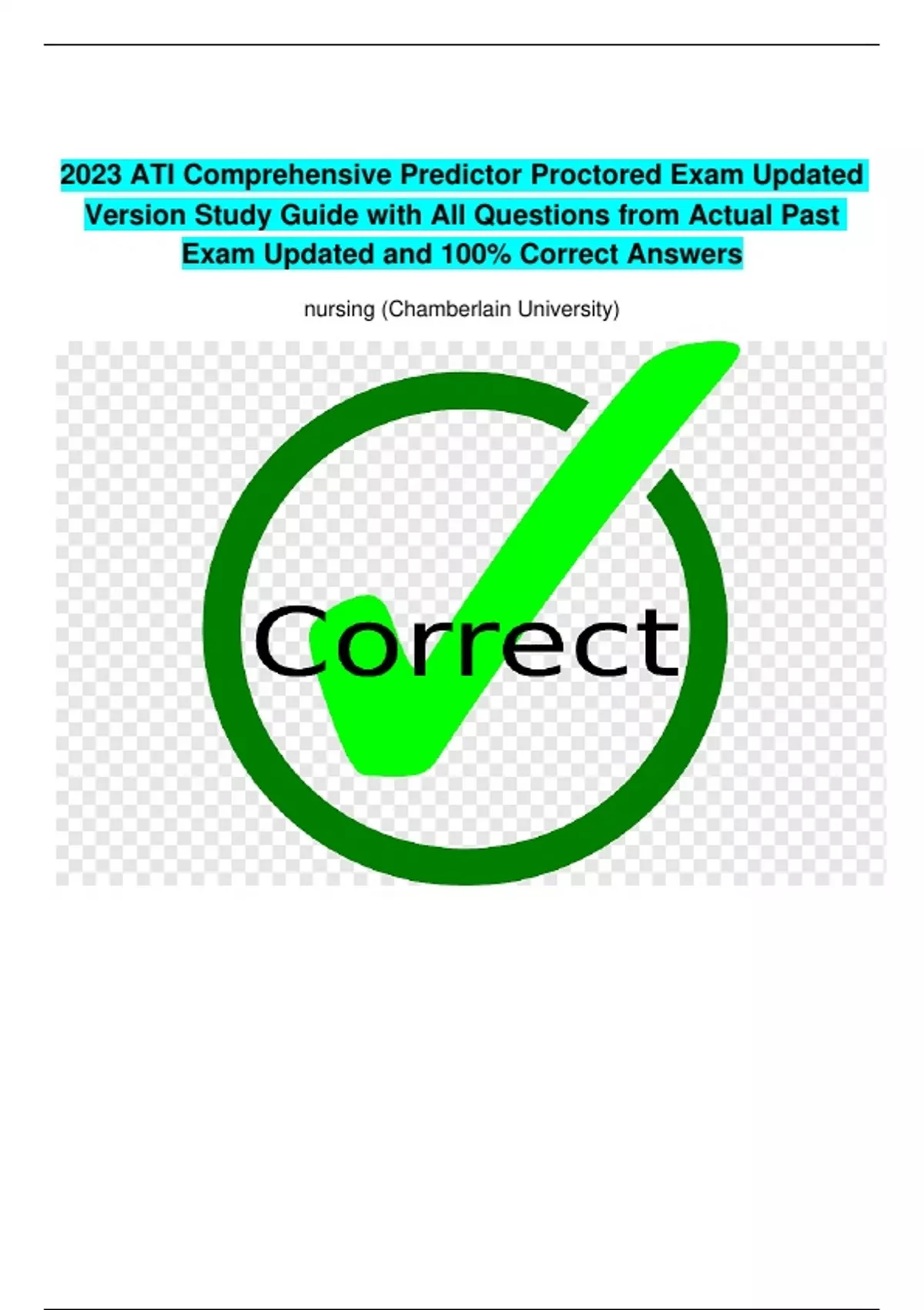 2023 ATI Comprehensive Predictor Proctored Exam Updated Version Study Guide with All Questions from Actual Past Exam Updated and 100% Correct Answers nursing (Chamberlain University)