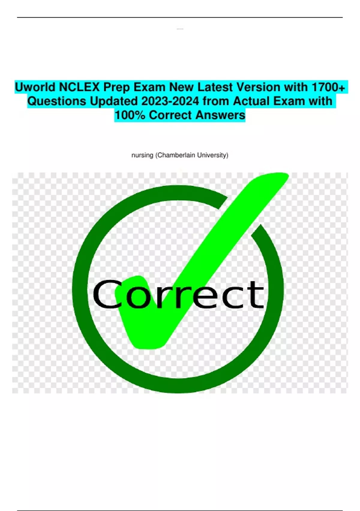 Uworld NCLEX Prep Exam New Latest Version with 1700+ Questions Updated from Actual Exam with 100% Correct Answers nursing (Chamberlain University)